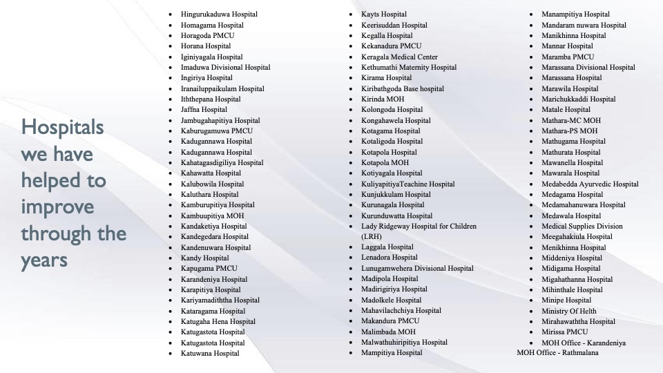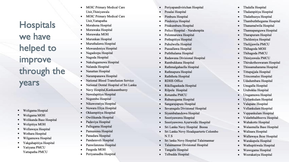 We are currently partnering with the Hospital Services Council (HSC) at National Hospital of Sri Lanka to ensure our donations are distributed equitably across Sri Lanka.