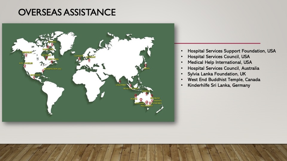 Reflecting on the past few years, we are proud of our successful expansion of partnerships with both local and international individuals and organizations, which has notably enhanced the quality of our services. We extend our heartfelt thanks to our sponsors, donors, and volunteers for their steadfast support. We are particularly grateful to our international partners in the USA, Canada, Australia, and the UK for their continued generosity in supplying us with invaluable medical equipment and supplies. Despite these advancements, the demand from patients and rural hospitals remains substantial. We wish to emphasize the continued need for additional funding to enhance our local resources for storage, maintenance, and distribution. We extend our deepest gratitude to the Board of Directors of the National Hospital, the Chief Matron and Nursing staff, Consultants, and all Medical and Administrative staff. Their cooperation is vital for us to continue providing essential support to those in need.
